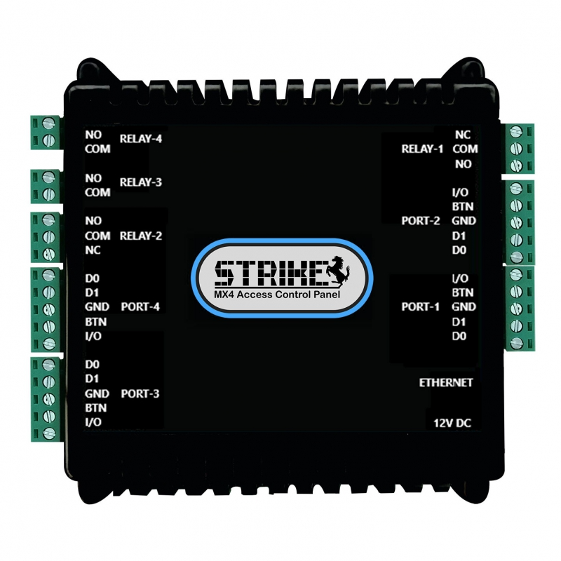 Yeni nesil Access control paneli Strike MX4 ilegeçiş kontrolünü daha detaylı ve güvenli yapabilirsiniz. 4 adet wiegand kart okuyucu reader bağlanabilen panel aynı zamanda 2 adette röleye sahiptir. Kart bazında, panel bazında ve gurup bazında geçiş saati aralıkları ve hakları tanımlanabilir. MS SQL veri tabanına sahip programı ile tanımlamalar yapılarak raporlar alınabilmektedir.